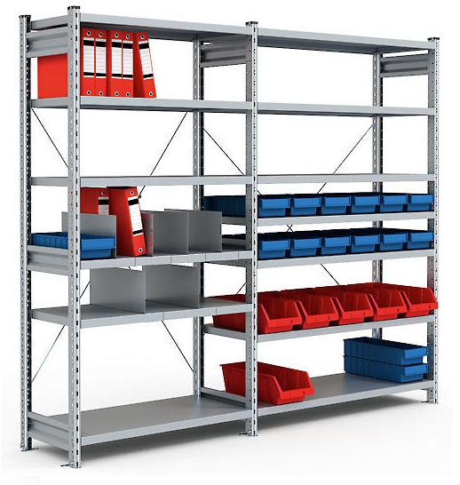 Комплектация: 3 рамы рамы 2067, 6 полок 1000х500 мм, 7 полок 1300х500 мм, раскосная система. Допустимое минимальное количество полок на секцию стеллажа - не менее четырех.