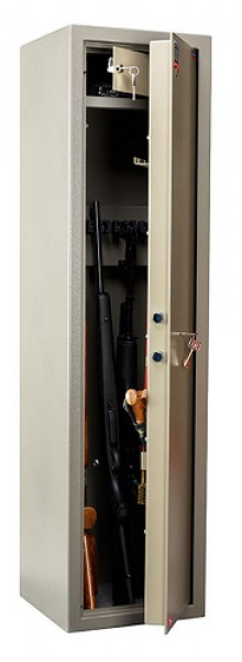 Предназначены для хранения огнестрельного оружия сейфы соответствуют требованиям ст.59 Постановления правительства РФ № 814 от 21 июля 1998 года О мерах по регулированию гражданского и служебного оружия и патронов к нему на территории РФ Толщина металла лицевой панели - 5мм, корпуса - 3мм Вместимость сейфа -5 стволов Максимальная высота ствола 1395 мм Размер патронного отделения 141х348х173 мм (усеченное) Комплектуются ключевым замком Цвет- корпус и двери имеют различные оттенки коричневого с эффектом молотковой эмали