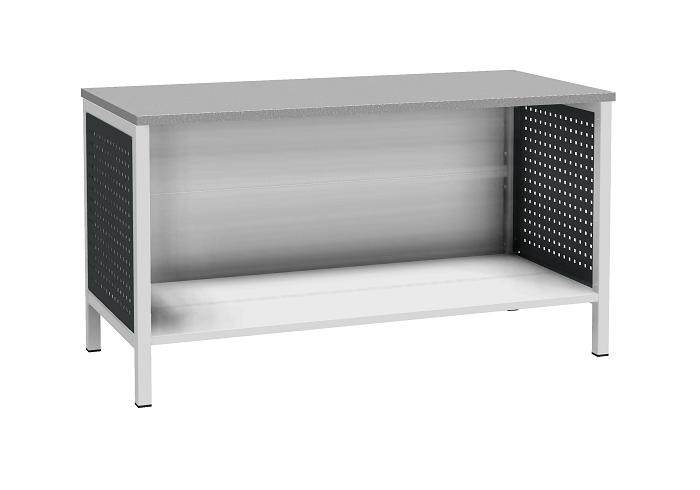 Цвет верстака: серый Ral 7038, панель облицовочная антрацит Ral 7016. Тип покрытия: эпоксидная порошковая краска. Поставляется в разобранном виде