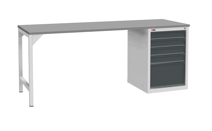 Цвет верстака: серый Ral 7038, лицевая панель ящиков/дверей антрацит Ral 7016. Тип покрытия: эпоксидная порошковая краска. Поставляется в разобранном виде