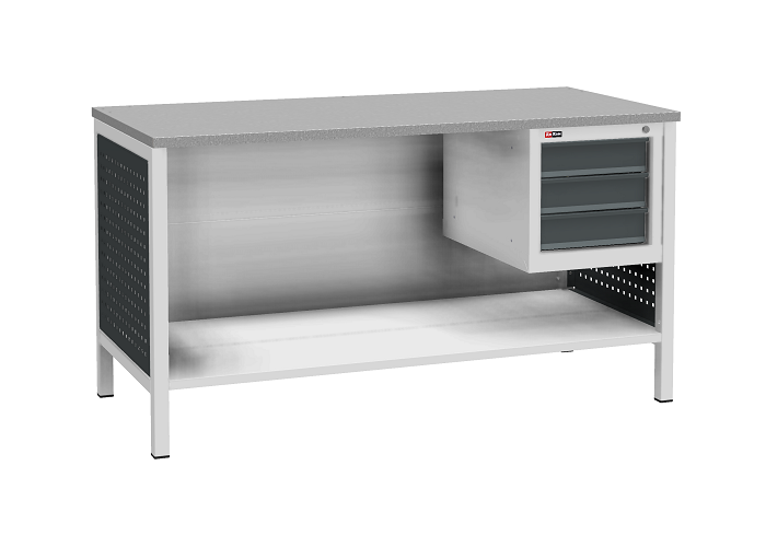 Цвет верстака: серый Ral 7038, панель облицовочная и лицевая панель ящиков/дверей антрацит Ral 7016. Тип покрытия: эпоксидная порошковая краска. Поставляется в разобранном виде