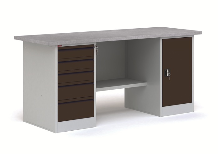 Цвет: верстак - серый Ral 7035, дверь тумбы - черный муар Ral 7021. Гарантия 1 год. Срок службы 10 лет