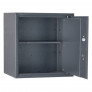 Сейф односекционный ШБМ-46МК предназначен для хранения бумажных документов. Сейф сертифицирован на устойчивость к взлому по ГОСТ Р 51113-97 (п 4.1 табл 1а) и соответствует классу взломостойкости Н0 (ниже нулевого). Каркас представляет собой сварные вместе пластины из высококачественной стали. Толщина стенок сейфа 2 мм, толщина двери 5 мм. ШБМ-46МК оснащен съемной полкой. В двери установлен 8-ми сувальдный ключевой замок и ручка. На задней стенке корпуса расположены отверстия для крепления. Цвет темно-серый с эффектом молотковой эмали